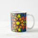 Tasse blanche décorée d'un motif géométrique d'hexagones et d'étoiles.