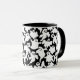 Cette tasse de café est montrée en noir et blanc avec un design d'impression fantôme d'Halloween. Customisez cet objet ou achetez tel quel.