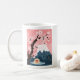 La tasse à café présente un dessin mignon inspiré du Japon avec du singe des neiges, des fleurs de cerisiers et le Mont Fuji.