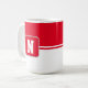 La tasse de café est présentée ici avec une impression en bloc couleur avec un exemple de lettre, de personnaliser et de changement de couleurs et de lettre ou d'achat tel quel. Couleurs Rouge, Blanc Customiser cet article ou acheter tel quel.