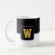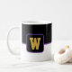 La tasse de café est présentée ici avec une impression en bloc couleur avec un exemple de lettre, de personnaliser et de changement de couleurs et de lettre ou d'achat tel quel. Couleurs Black Purple, Blanc Customiser cet article ou acheter tel quel.
