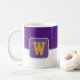 La tasse de café est présentée ici avec une impression en bloc couleur avec un exemple de lettre, de personnaliser et de changement de couleurs et de lettre ou d'achat tel quel. Couleurs violet, blanc Customiser cet article ou acheter tel quel.