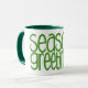 Un design de texte numérique dessiné à la main disant Salutations de saison en vert, pour souhaiter à la famille, aux amis ou aux entreprises partenaires et clients un Joyeux Noël, Bonne Année et meilleurs voeux pour la prochaine saison de fête!