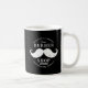 Une belle tasse de coiffure noire de style vintage incorporant vos détails d'affaires. Cette tasse de coiffeur élégante est idéale pour les coiffeurs, coiffeurs, coiffeurs et professionnels du salon de coiffure. Une façon simple et professionnelle de promouvoir votre activité de salon de coiffure. Une moustache parfaite sur le thème de la mustache d'affaires moderne mug. Personnalisez vos détails pour créer votre propre tasse unique. Idéal pour le personnel et les uniformes des employés.