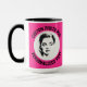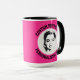 My Face on a Large custom Combo Mug, 15 oz., 3.4" diameter x 4.5" high, with STRAWBERRY PINK #FF2F92 background and COLLEGE text font. (A combo mug has black, hunter green, maroon, navy blue or yellow handle + inside). Custom photo and personalized text template with two individually customized design areas (see store for more background colors, font styles, and alternative template options).