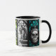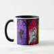 Step into a world of shadow and splendor with this Gothic stained glass mug, featuring four vertical panels inspired by cathedral windows. Each panel showcases a mythic guardian: a regal griffin in violet, a fallen angel in crimson, a crouching gargoyle in emerald, and a skull adorned with sacred carvings in sapphire. Framed in pointed arches and crowned with rosette medallions, the design evokes medieval grandeur and symbolic depth. Cracked glass textures and muted tones add a vintage, mysterious aura. Ideal for lovers of dark fantasy, mythic art, and Gothic architecture.