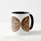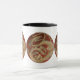 Trois dragons chanceux sur cette belle tasse avec un intérieur rouge de bonne chance. Illustration vintage d'une créature mythologique avec un design art nouveau de dragon japonais ou chinois doré dans un cercle rouge. En Asie, le dragon peut être un symbole de chance ou de bonne fortune. Ressemble à un serpent marin avec des nageoires ou un lézard animal reptile.