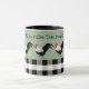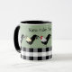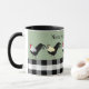 Nana Rule's the Roost Rooster Black White Name Mug, whimsical rooster design for your favorite rooster & chicken lover! Personalize for whomever rules the roost! Black white plaid check design on sage green.