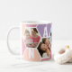 Canette à café Honeypeb, personnalisée avec 5 de vos photos préférées et imprimée avec un nom de 5 lettres, comme NANNY. Le design comprend un collage photo en nid d'abeille dans une palette de couleur sorbet d'été de rose lilas et pêche. Si vous souhaitez modifier les couleurs, cliquez sur "customiser plus loin" et cliquez sur chaque hexagone que vous souhaitez modifier.