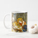 Mug de café avec fresque de Giotto La Nativité (vers 1304). La Vierge Marie tient le nouveau-né Jésus comme des anges au-dessus se réjouir. Les bergers et leurs animaux entourent l'écurie. Un cadeau émouvant pour Noël et la célébration religieuse.