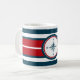Design nautique avec décoration de boussole en forme ronde sur arrière - plan rayé rouge, bleu et blanc