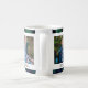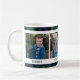 Stylish Christmas coffee or hot cocoa mug features three (3) favorite holiday photos and your choice of custom text. The default design includes pictures of two siblings, their names, and a photo together with the year. Design features a classic navy blue, hunter green, and black watch Scottish tartan plaid border with a crisp white background to highlight your photos. Photo credit: Sunbeam Photography www.facebook.com/SunbeamPhotography