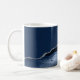 This luxurious design features an elegant navy blue watercolor agate image trimmed with faux silver glitter on a navy blue background.