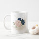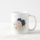 Magnifique tasse à café avec des fleurs navy et rose blush et des feuilles vertes.