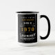 Pour ceux qui sont nés en 1970 et fêtent un anniversaire, nous avons la tasse de café d'anniversaire idéale. L'arrière - plan noir avec un design de typographie vintage blanc et or est simple et élégant avec une touche rétro. Customisez facilement le texte de ce cadeau d'anniversaire en utilisant le modèle fourni. Plus de cadeaux et de fournitures de fête disponibles avec le design "légendaire" dans le magasin.