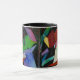 Rétro peinture abstraite semblante de beaux-arts de mod en acrylique qui se reproduit sur cette tasse comme si c'étaient une tapisserie parce que l'armure de la toile montre. Effet très intéressant. Une partie d'une série de peintures.