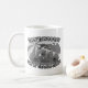 Cette tasse de géologie amusante représente un géologue de bande dessinée en noir et blanc, rétro, 1930-1940 style de dessin animé. Heureux M. Sun brille sur le désert avec un joyeux petit nuage et des rochers joyeux, tandis qu'un géologue heureux et chanceux se promène dans le champ avec son marteau de roche et son objectif à main ! Le texte gris sur la tasse dit : "Ne vous inquiétez pas ! Je suis géologue !" Faites savoir aux gens qu'ils sont entre de bonnes mains quand vous êtes là !