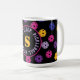 Rose néon, jaune et violet sur le motif de pickleball noir, texte personnalisé Coffee Mug. Parfait comme cadeau pour joueur de pickleball. Mange, Dors. Pickleball. Recommencer.