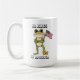 No Kings Frog with American Flag standing on a crown anti trump protest coffee mug. Make a political statement with this Democrat Anti-Trump coffee cup.