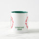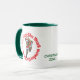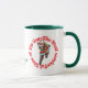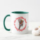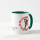 Cette mignonne tasse Holiday présente une image de dessin d'un renne de Père Noël. Il saute dans un cercle formé par le texte Le Temps le plus merveilleux de l'année. L'image et le texte sont placés sur un arrière - plan blanc, et répétés deux fois sur la tasse. Entre les images est votre texte customisé en vert. Amusement pour les adultes et les enfants !