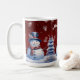 Profitez de votre café matinal en cette saison de vacances avec un café de Noël Red Winter Forest Snowman. Le design de la moquette comprend un mignon bonhomme de neige dans un chapeau et écharpe de charme debout dans une scène de forêt hivernale avec la neige tombée. Autres cadeaux et objets de vacances disponibles avec ce design aussi.