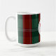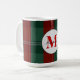 Posé des tasses de Noël monogramme. Festive monogrammed rouge et vert Buffalo Plaid conception de Noël. Personnalisez avec votre nom de famille et votre initiale monogramme. Créé par ©Lesruba Designs.