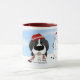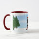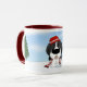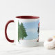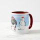 Conception unique de Noël de Terre-Neuve. Newfie avec un peu de neige sur son nez et une piscine de bave à ses pattes. Le bonhomme de neige irrité regarde dessus. Pour écarter le froid que Terre-Neuve a sur une écharpe et un casquette qui sont les couleurs de son pays.