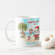Noël en juillet ou une tasse de Noël australienne avec un joli Père Noël et ses copains sur la plage. Personnalisez le texte ou laissez-le vide. - Kate Eden Art