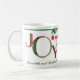 Mug de vacances unique et spécial — JOY a écrit avec des lettres ROUGES et VERTES ET l'opportunité d'inclure une photo. Ajoutez ensuite un nom de famille, un prénom ou un message. Vous allez aussi mettre dans la bonne année — et vous avez quelque chose de vraiment élégant. La bonne photo en fait un souvenir exceptionnel pour vous-même ou comme cadeau — il peut falloir essayer de trouver la bonne photo. Si vous avez besoin d'aide pour la conception, envoyez un courriel à : charmdesignstudio@rcn et nous serons heureux de travailler avec vous.