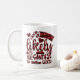 Cette tasse de café de vacances drôle présente l'image texte "Très probable de demander à Père Noël de définir bien" en plaid rouge. Ajoutez votre nom sur le côté pour personnaliser. Parfait pour la saison des fêtes.