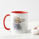 Cette grosse tasse branchée vous montre deux de vos photos préférées, encadrées de douches à neige. Un plaisir hivernal pour toute la famille, les proches et les amis. La police de caractères manuscrite moderne dit : "Joyeux Noël" et "Bonne Année" et comporte un coeur rouge minuscule mais doux. Vous pouvez modifier la couleur du texte et de la tasse. Joyeuses vacances ! ©Susanne Sachers - Sunny Mind Design 🌞