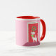 Cette tasse fantaisiste présente une adorable illustration d'un chat blanc et d'une souris ludique, ornée d'une tenue festive, dans un cadre de vacances joyeuses.
