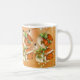 Magnifique et festive tasse classique pour les fêtes, avec un design de Noël victorien Dame Orange Fond avec Lumières