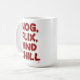 A funny jolly nog flix and chill happy holidays Christmas season humor slogan illustrated deluxe ceramic coffee, tea or cocoa mug. Get a cute winter holiday season motto cup today. Have a happy holiday with this super cute holly jolly Christmas design.