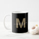 Personnalisé Moderne Glamour Noir Or Nom Initial Monogramme Café Mug. Cette tasse élégante allie une ambiance minimaliste moderne à une touche personnelle glamour, parfaite pour les amateurs de café ou de thé. Doté d'une initiale en or audacieuse (dans une teinte brune chaude et plate sans éclat) sur un arrière - plan noir élégant et d'un nom de script blanc classique, le monogramme de luxe apparaît de part et d'autre pour un look hors du commun sous tous les angles. Avec une atmosphère chic et sophistiquée, cette tasse est un cadeau idéal pour les anniversaires, les ménagères, les vacances, ou simplement parce que. C’est aussi un excellent choix pour ajouter une touche glamour à votre routine de café matinal.