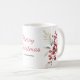 Mug à café botanique de la baie rouge de Noël avec nom. Facile à modifier le texte. Joli et festif aquarelle design pour la saison des fêtes. Ça fait une idée de cadeau.