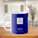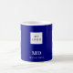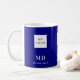 Un arrière - plan bleu marine classique. Personnalisez et ajoutez le logo de votre entreprise (3), un nom et des initiales monographiques (3).
