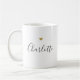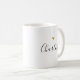 Tasse à café personnalisée avec calligraphie noire moderne et élégant motif de cœur doré.