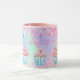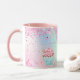Un holographe branché, arrière - plan irisé avec des couleurs unicorne et des couleurs arc-en-ciel en rose, violet, vert menthe. Décoré de confettis roses et de 3 cupcakes. Personnalisez et ajoutez votre nom. Le nom est écrit avec un script de style moderne écrit à la main avec des swashes. Pour que les swashes ne suppriment que le nom de l'échantillon, laissez les espaces ou émoticônes devant et après le nom.