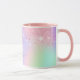Un arrière - plan holographique branché aux couleurs pastel unicorne et arc-en-ciel rose, violet, or rose, vert menthe. Décoré avec de la poussière de parties scintillant en faux rose. Personnalisez et ajoutez un nom, écrit avec un script de style à la main moderne avec des swashes. Lettres violettes. Pour que les swashes ne suppriment que le nom de l'échantillon, laissez les espaces ou émoticônes devant et après le nom.