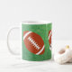 The Custom Team Name Fan de football ou Coach Coffee Mug : Une belle tasse à café personnalisable pour les entraîneurs de football, les joueurs et les fans, avec une zone de texte personnalisée où vous pouvez taper le nom de votre équipe de football préférée (ou tout autre texte, comme votre slogan d'équipe, le nom de l'école, la mascotte, etc)! Fait un cadeau spécial pour les entraîneurs de football et parfait pour l'utilisation au bureau ou à la maison en regardant les jeux de l'université le samedi ou les pros le dimanche Fun Day!. Si votre texte personnalisé est trop long ou trop court, vous pouvez cliquer sur le bouton [Personnaliser] pour modifier la taille, le style ou même la couleur de la police ! Dispose de footballs bruns très détaillés et réalistes sur le dessus de pelouse verte luxuriante. Vous serez prêt pour le coup d'envoi après avoir dégusté votre café du matin dans cette belle tasse.