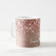 Customisez le script de style manuscrit moderne pour créer votre propre tasse de café décorative. Ajoutez une initiale de monogramme pour créer une combinaison initiale de prénom. Pour beaucoup de noms, il y a beaucoup de place si vous voulez augmenter la taille de police. Vous pouvez également déplacer l'image vers le haut pour qu'il y ait plus de fausse feuille que de fausse parties scintillant sur la zone de conception. Tant de façons de personnaliser ce cadeau pour elle. Parties scintillant d'or rose et rose et art numérique en feuille de métal brossé (il sera imprimé comme une photo sur votre design moderne).