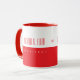 Un café-mug moderne chaud rouge et blanc personnalisé avec un nom spécial et la profession (architecte).