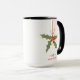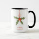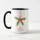Nom du monogramme Christmas Holly Winter Floral Coffee Mug présente une décoration sainte en rouge et vert avec votre nom personnalisé et monogramme en élégant script rouge ci-dessous. Personnalisez en modifiant le texte dans les zones de texte fournies. Parfait pour l'anniversaire, les cadeaux de Noël, les meilleurs amis et plus. Conçu par ©Evco Studio www.zazzle.com/store/evcostudio
