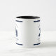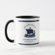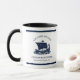 Coussin nautique en bleu marine lisant "bienvenue à bord" ainsi que votre nom et votre emplacement personnalisés dans un logo Ship.