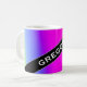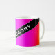 Les caractéristiques de conception ce de tasse un amusement, arc-en-ciel-comme le motif multicolore de gradient comportant de diverses nuances de couleurs aiment jaune, orange, rouge, rose, pourpre, bleu et vert. Il comporte également un nom personnalisé en texte coloré par blanc dans un secteur coloré par obscurité, avec tous les deux sous un angle. [~Z0000051]