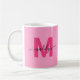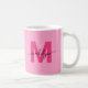 Personnalisé Moderne Feminine Hot Pink Nom Initial Monogramme Coffee Mug. Cette tasse ultra-féminine apporte une touche ludique et chic à tous les amateurs de café ou de thé. Doté d'une initiale rose chaud et audacieuse sur un arrière - plan rose doux avec un élégant nom de script noir, le monogramme est affiché de chaque côté, ajoutant un élément élégant et personnalisé de chaque angle. Son design moderne et minimaliste, mélangé à une ambiance fun et girly, en fait un cadeau fantastique pour les anniversaires, les ménagères, les vacances, et juste parce que. Parfait pour les douches nuptiales, les soirées bachelorette ou les cadeaux de mariage, ce mug allie élégance classique et touche personnelle tendance.