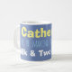 Tasse à café pour employé de bureau. Mug qui indique le nom du propriétaire ainsi que leur préférence pour le lait et le sucre. Instructions pour le café.