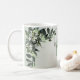 Tasse à café Nom Monogramme Floral Feuillage Feuilles d'Eucalyptus. Design unique, beau, élégant. Facile à personnaliser. Le style, la taille et les couleurs de la police peuvent être modifiés. Des articles assortis sont disponibles.