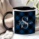 Mug Nom Monogramme Rustique à Carreaux Buffalo Bleu Ma